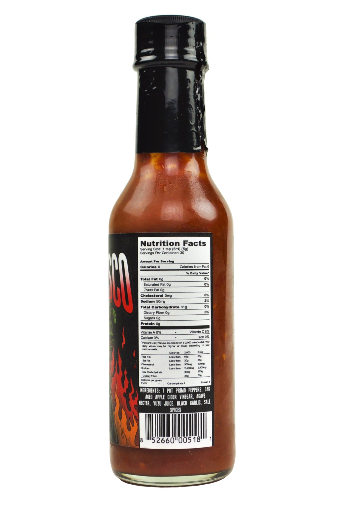 Your hair will stand on end with one taste of this scorcher! Packed with loads of 7 Pot Primo peppers and aided by the citrus notes of yuzu and lemon, this hot sauce will leave your taste buds tingling. Try it on a steak or chicken from the grill - just not too much.