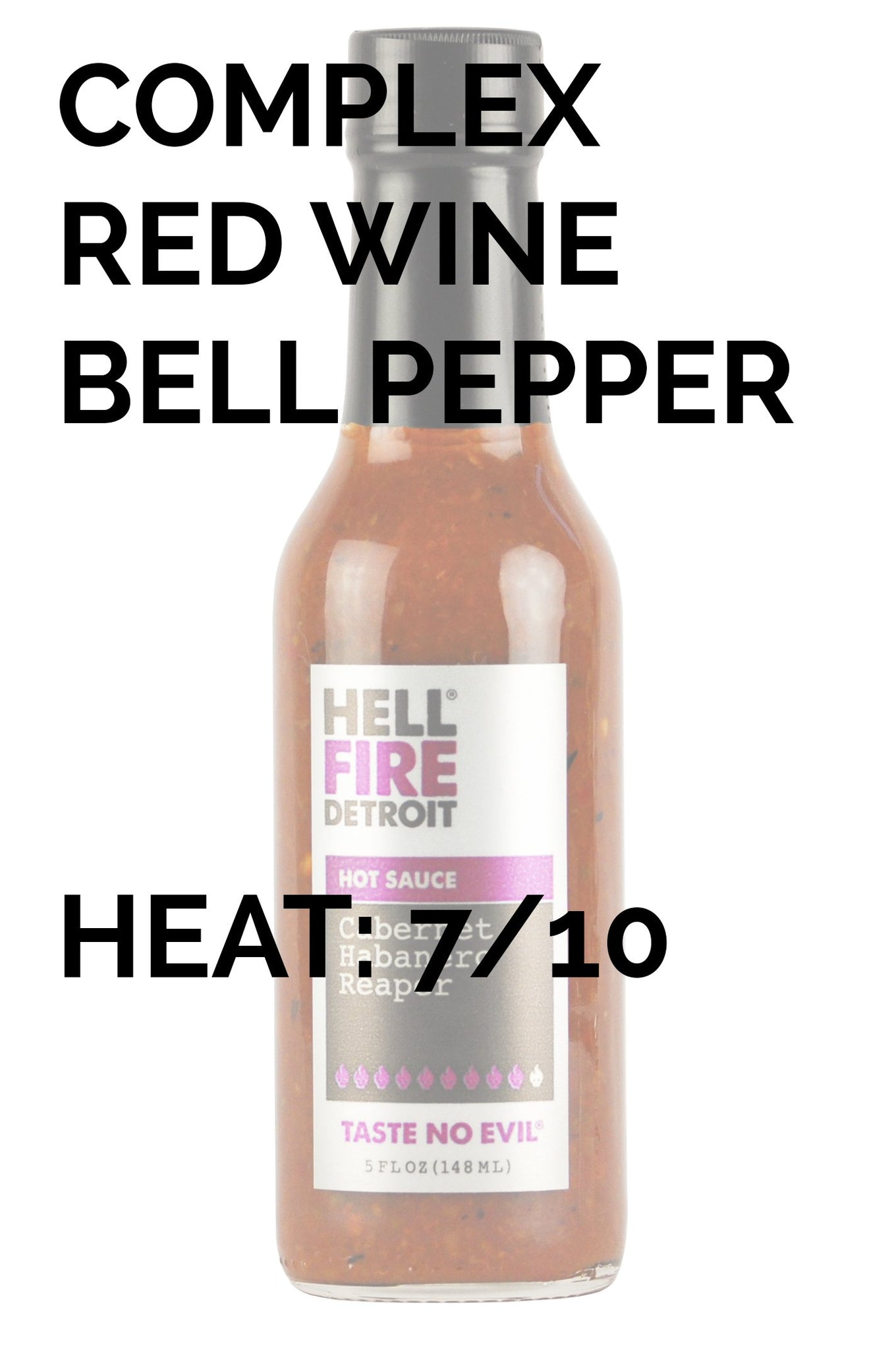 The first ingredients say it all! This beautifully complex sauce features an enormous depth of flavor thanks to Cabernet wine and fire-roasted peppers. Habaneros and Carolina Reapers combine for fire power, while the tartness of the wine is balanced out by sweet tomato, briny olives and savory capers & garlic. Pour it like a fine wine and pair with steak, grilled portobellos or a cheese plate.