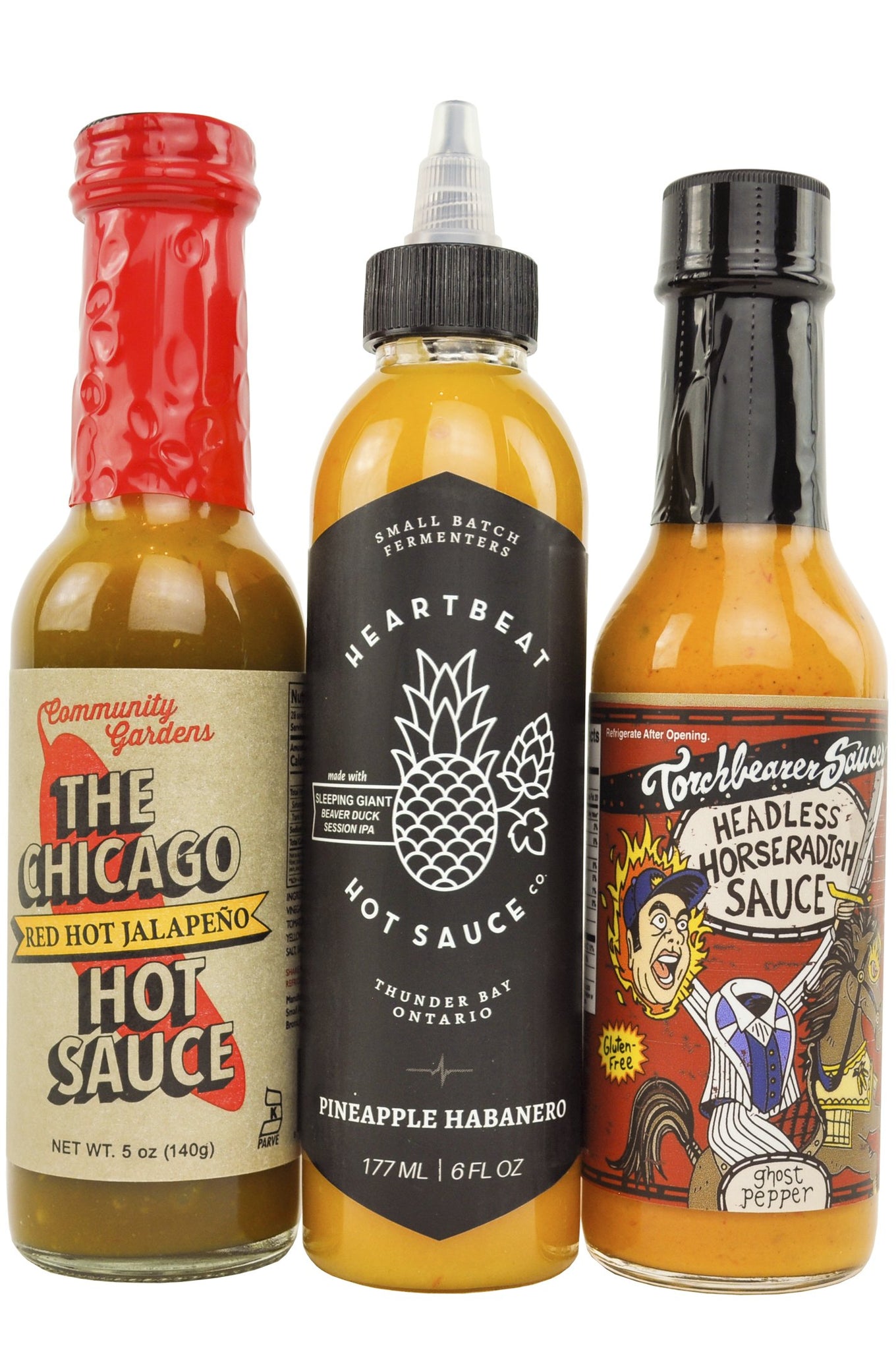 Happy 10th season of Hot Ones! For this special milestone, we brought you all new exclusive sauces made by fan favorite makers from throughout the seasons. The Warm Up Pack starts the lineup off strong with three totally diverse sauces that take the palate on a roller coaster ride. First, pickley Small Axe Chicago smacks of the quintessential Chicago Dog, then sweet and hoppy Pineapple Habanero mellows you out with fruity, tropical notes. The front half culminates with a heady punch from nasal-tickling Headless Horseradish - a memorable finish! All three sauces would be just as at home on the most humble of sandwiches or in the most complex of dishes. We hope you enjoy them on either!