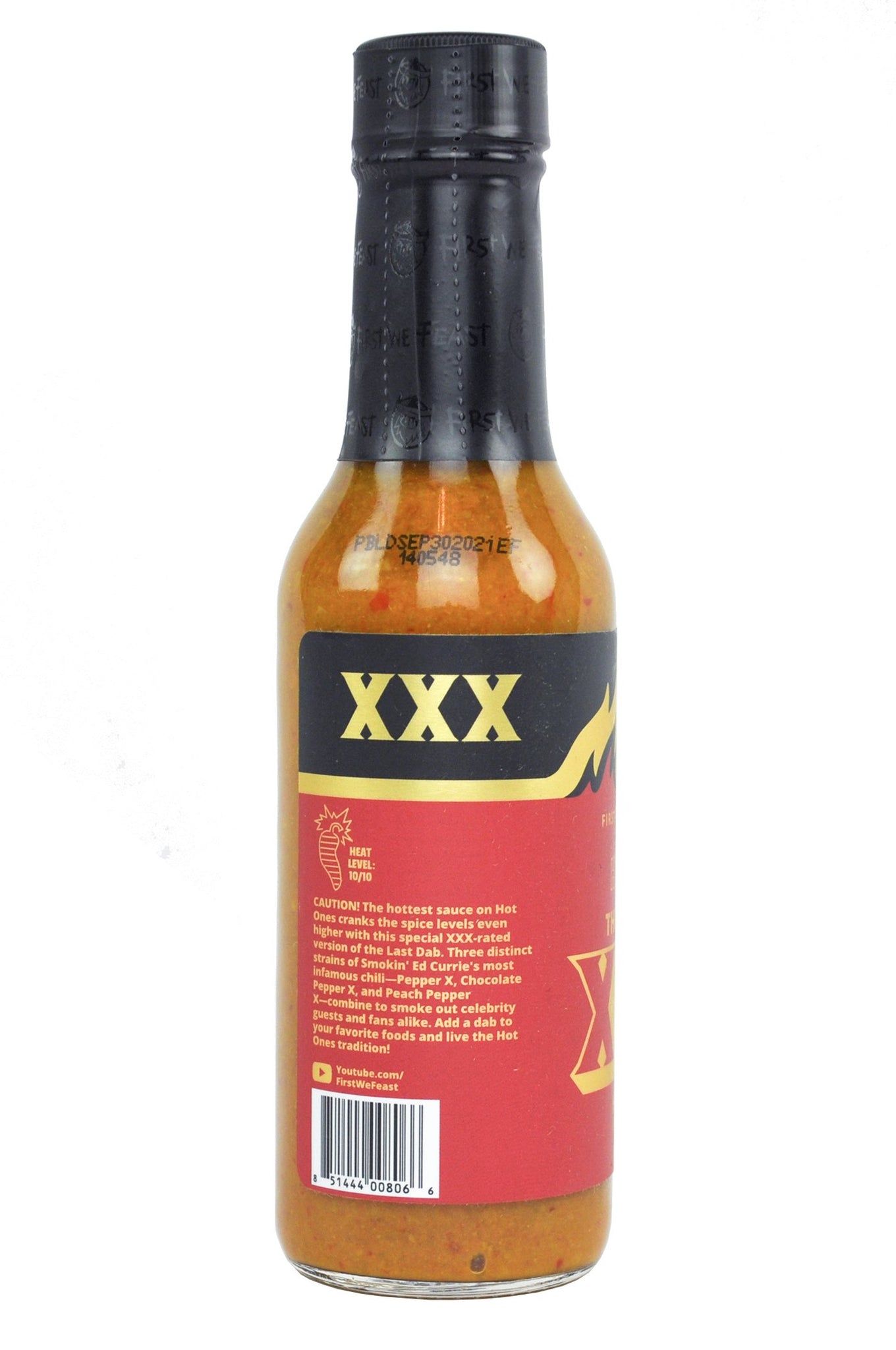 CAUTION! The hottest sauce on Hot Ones cranks the spice level even higher with this special XXX-rated version of the Last Dab. Three distinct strains of Smokin' Ed Currie's most infamous chili-pepper, Pepper X, Chocolate Pepper X, and Peach Pepper X, combine to smoke out celebrity guests and fans alike. Add a dab to your favorite foods and live the Hot Ones tradition!