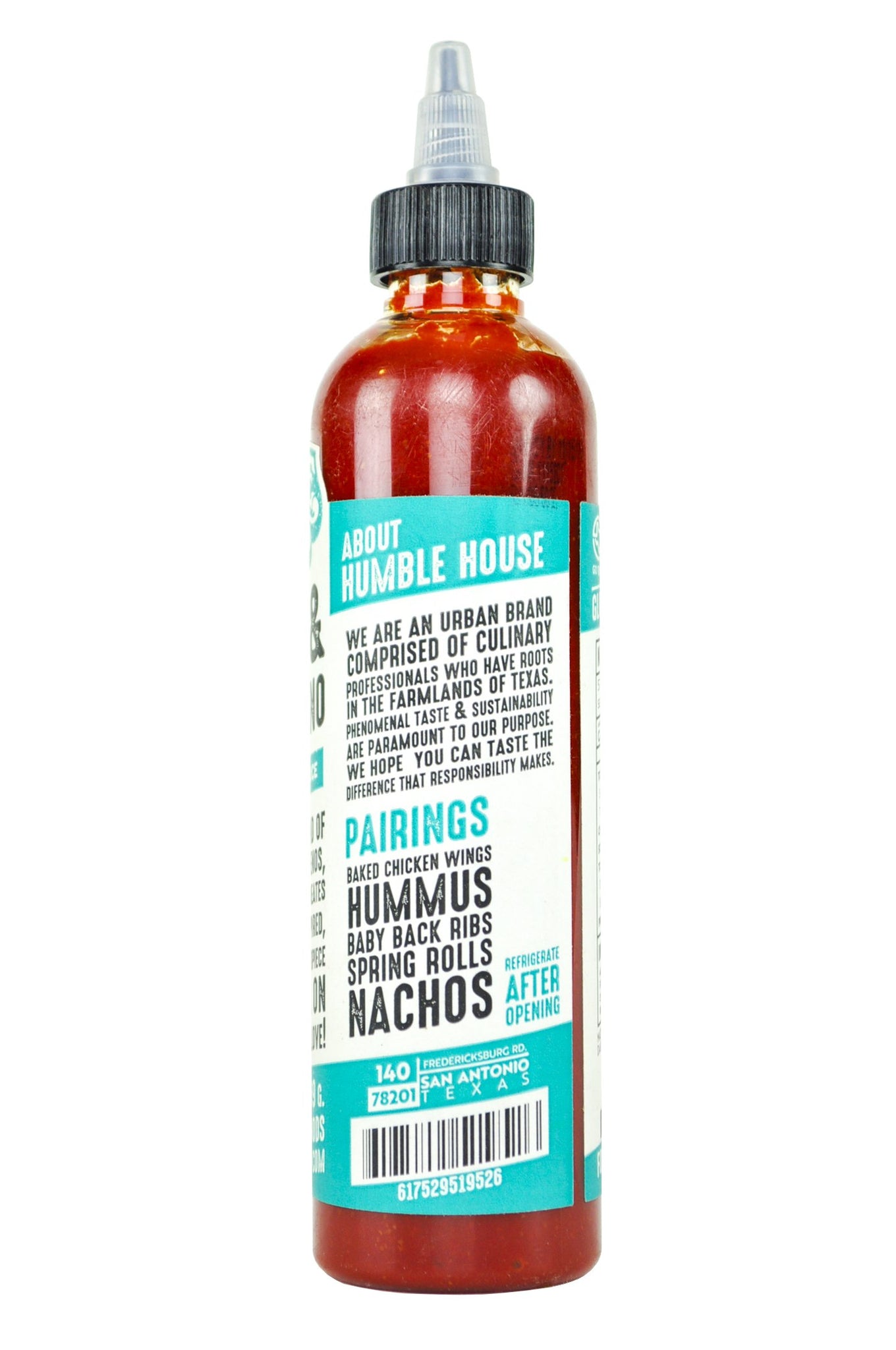 This third sauce from the San Antonio kitchen of Humble House is a well balanced red jalapeño and fresh garlic masterpiece. The guajillo peppers add a nice sweet touch to this south of the border Sriracha, landing at a solid mild heat level.
