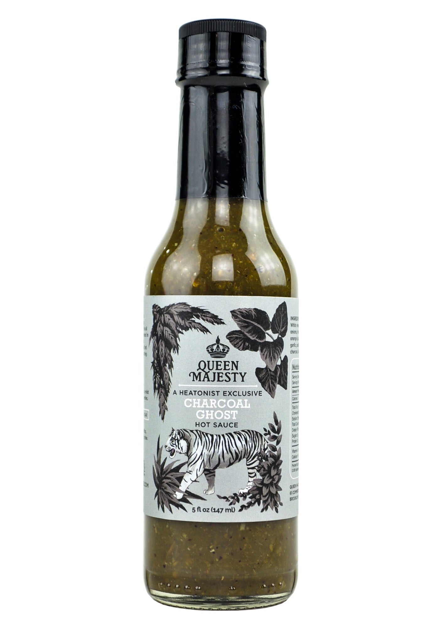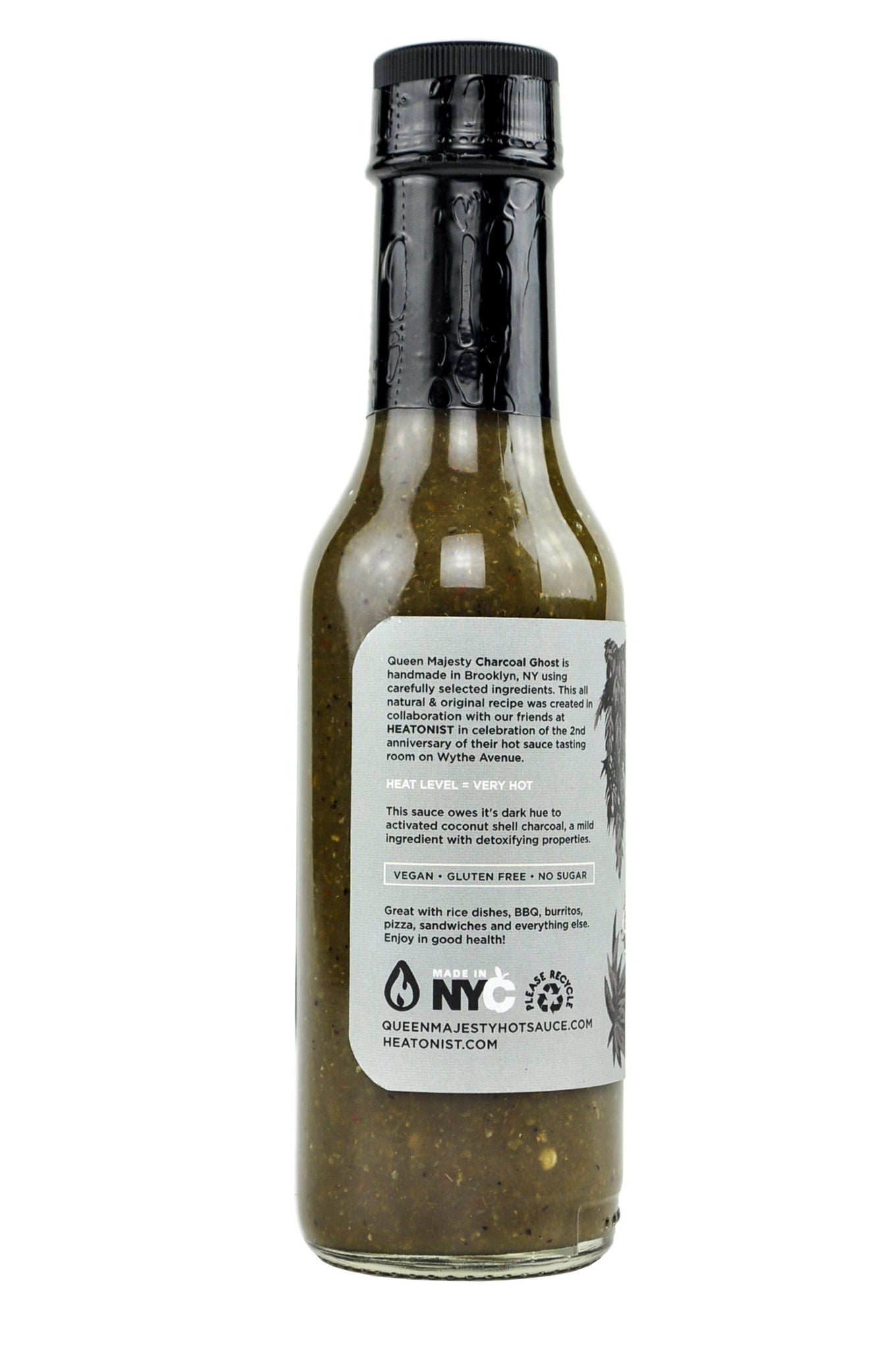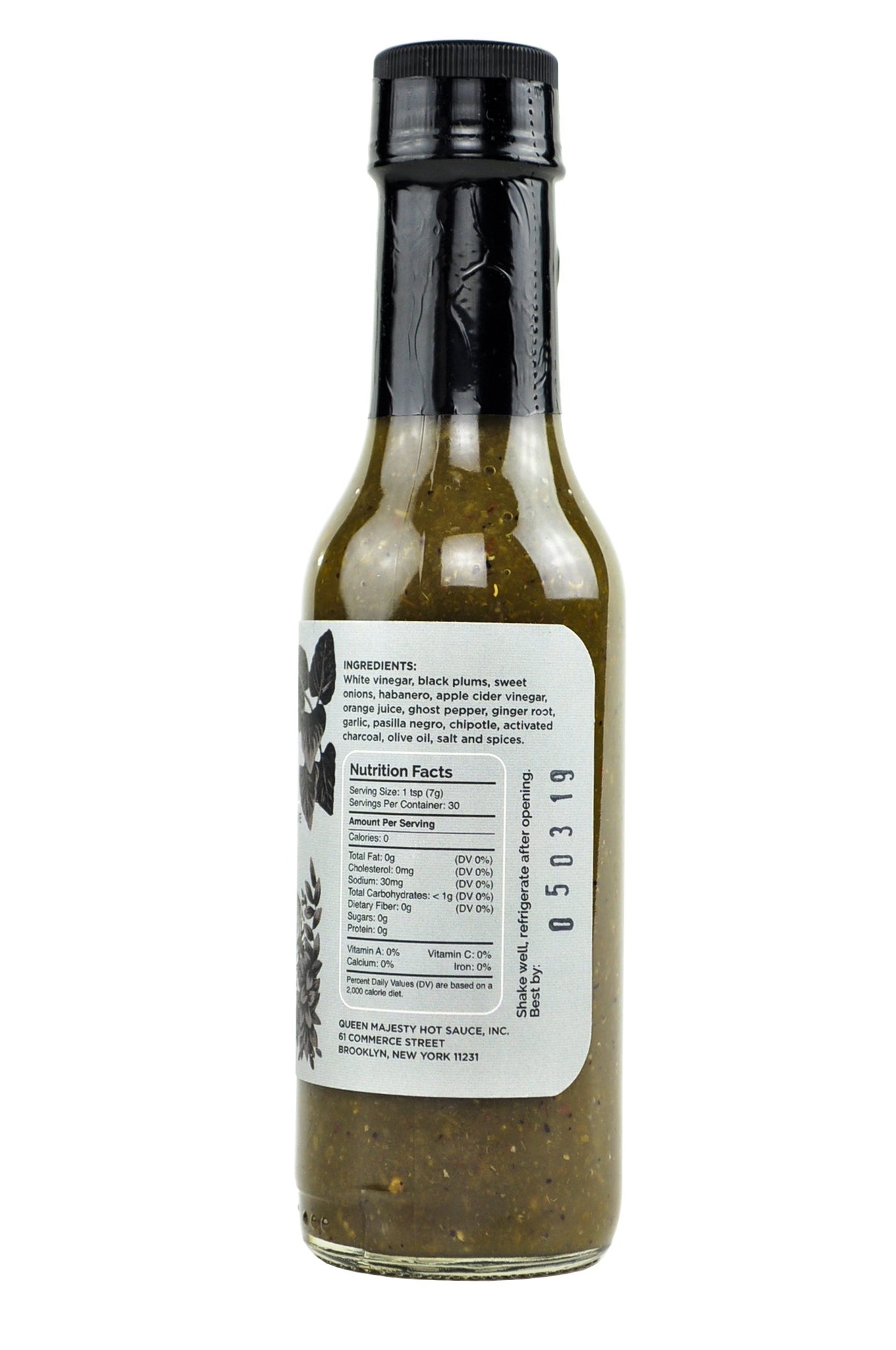 The color of this sauce alludes to the mystery of its flavor. Even before tasting, the aromas of ginger and plum hit your nose and excite the senses. As it unfolds on your tongue you are taken on a journey, from tart notes of apple cider vinegar and black plum, to the heat of habanero meeting the sweetness of orange in the middle mouth, finishing with a garlic and ghost pepper drawn out finish. On first bite you don't know what to think. The only thing you know is that you want more. Queen Majesty Charcoal Ghost Hot Sauce is handmade in Brooklyn, NY using carefully selected ingredients. This all natural recipe was created in collaboration with HEATONIST in celebration of the 2nd anniversary of our hot sauce tasting room on Wythe Avenue. This sauce owes it's dark hue to activated coconut shell charcoal, a mild ingredient with detoxifying properties.